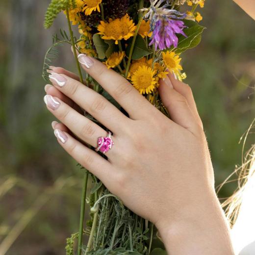 Elevate your love story with our enchanting 7 1/4 CT TGW Created Pink Sapphire and Diamond Accent Heart Wrapped Ring in Sterling Silver. This captivating piece features a sizable heart-shaped centerpiece adorned with 7.25 carats of created pink sapphires, exuding a romantic and vibrant aura.The exquisite design includes sparkling diamond accents that gracefully wrap around the heart, adding a touch of brilliance and sophistication. Set in sterling silver, this ring combines opulence with affordability, making it a dazzling symbol of your enduring love.Celebrate the extraordinary with a ring that captures the essence of romance and elegance. Our Created Pink Sapphire and Diamond Accent Heart Wrapped Ring is a statement piece that promises to make every moment special.
