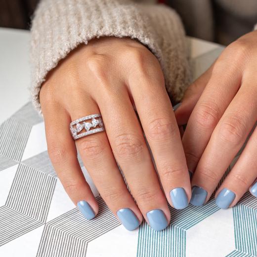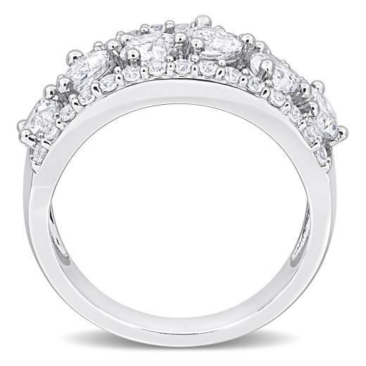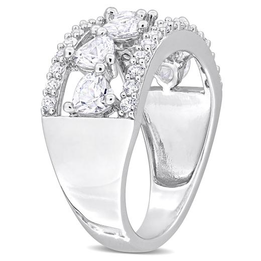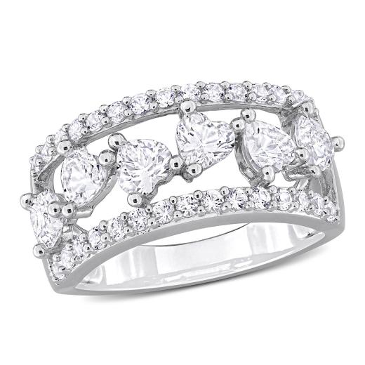 Radiate elegance with the Women's 2 1/4 CT Created White Sapphire Fashion Ring. Created meticulously in Silver, this stunning piece boasts a total gemstone weight of 2 1/4 carats. The ring features a captivating heart-cut created white sapphire at the center, exuding timeless allure. Surrounding the center stone are sparkling round-cut created white sapphires, arranged in a triple-row design that adds a touch of sophistication. This fashion ring, with its delicate and elegant presence, is a perfect choice for both everyday wear and special occasions. An ideal gift for her, whether for an anniversary or any other significant milestone, it perfectly captures the essence of refined beauty. Experience the fusion of classic charm and contemporary style with this exceptional creation from 's collection.