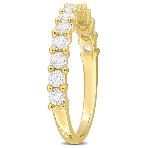 Celebrate your love with our 1 1/10ct TGW Created White Sapphire Anniversary Band in Yellow Silver. This exquisite band features a row of shimmering created white sapphires that symbolize your enduring commitment. Set in yellow silver, it's a beautiful and meaningful way to mark your special milestone.