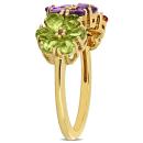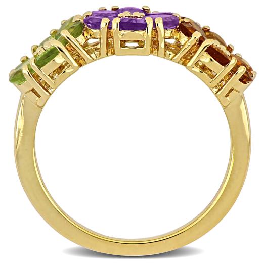 Add a touch of floral elegance to your ensemble with this charming ring featuring amethyst, citrine, peridot, and white sapphire. Crafted in yellow silver, this ring boasts a total gemstone weight of 2 3/4 carats, exuding femininity and grace. Its intricate floral design and colorful gemstones make it a perfect accessory for adding a vibrant touch to any outfit.