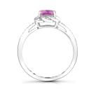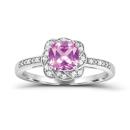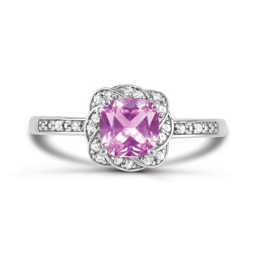 This beautiful ring features a vibrant created pink sapphire, complemented by sparkling created white sapphires, all set in sleek sterling silver. The combination of soft pink and brilliant white creates a stunning contrast, making this piece a perfect blend of elegance and colour for any occasion.