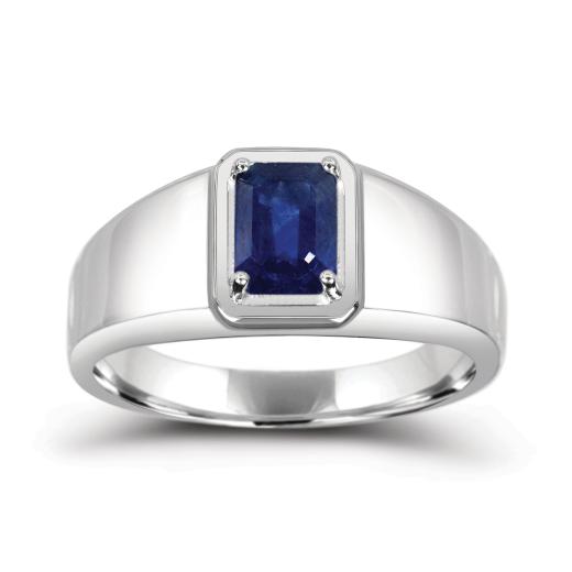 This striking men’s ring features a bold blue sapphire set in a sleek sterling silver band. The deep blue hue of the sapphire adds a touch of sophistication and elegance, while the sterling silver enhances the stone’s brilliance with its polished finish. The clean, contemporary design makes this ring perfect for everyday wear or as a statement piece for special occasions.