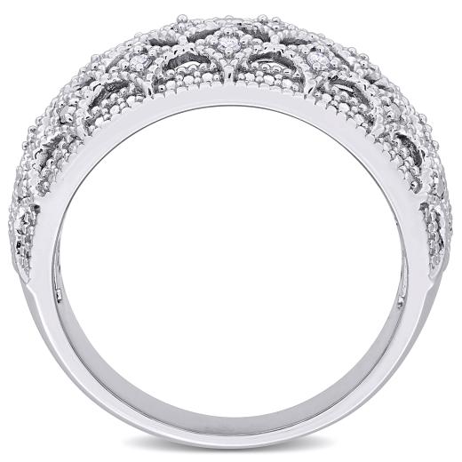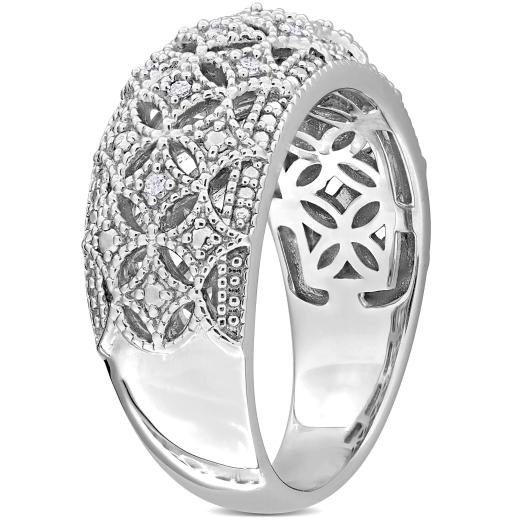This exquisite 1/10ct TDW Diamond Wide Band Fashion Ring crafted in Sterling Silver, a timeless statement piece to elevate any ensemble. Featuring a sleek and wide band design, this ring exudes elegance and sophistication. Adorned with sparkling round-cut diamonds totaling 1/10 carat in weight, each stone is meticulously set to create a mesmerizing brilliance. The sterling silver setting adds a touch of luxury and durability to this stunning piece. Whether worn alone for a touch of everyday glamour or paired with other accessories for a more dramatic effect, this fashion ring is sure to become a cherished addition to your jewelry collection. Flaunt your style and sophistication with this radiant diamond ring that effortlessly combines classic beauty with contemporary flair.