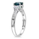 Sparkle with this gorgeous Created Emerald, Created White Sapphire and Diamond-Accent Three-Stone Ring. This lovely ring features a round-cut, prong-set created emerald gemstone (6x6mm) at center with a round-cut, prong-set created white sapphire (3x3mm) on each side. Twelve round-cut, pave-set diamonds add sparkle along the shank. This breathtaking gemstone and diamond three-stone ring is a must have in your jewelry collection.