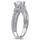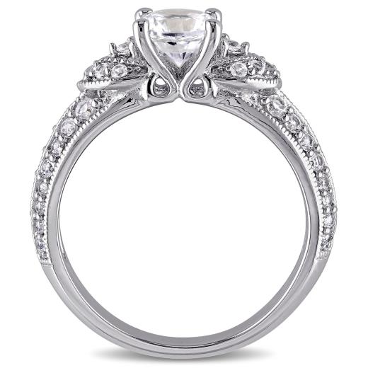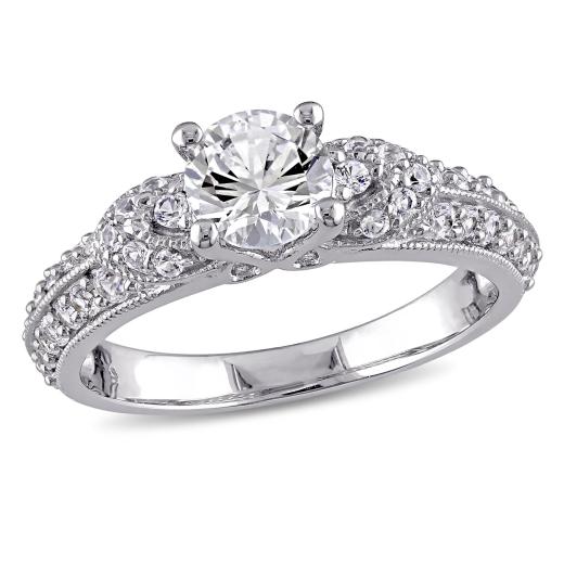 Express your love and devotion with this Created White Sapphire Vintage Engagement Ring. Crafted in lustrous sterling silver and features a round-cut created white sapphire gemstone (6 x 6mm) studded at the center with 44 round-cut created white sapphire gemstones rested on its band for giving classic look. Polished to a brilliant shine, this vintage engagement ring is the perfect addition to any jewelry collection. Melt her heart with this bold and beautiful engagement ring.