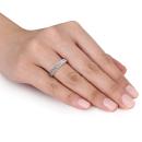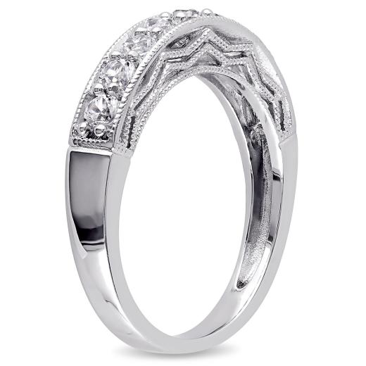 Let your relationship sparkle till eternity with this glamorous Semi-Eternity Anniversary Ring. Crafted in lustrous sterling silver, this classic ring showcases nine round-cut, pave-set created white sapphire gemstones (2.5x2.5mm). Polished to a brilliant shine with milgrain finish, this enchanting ring will be her go to accessory for every special occasion.
