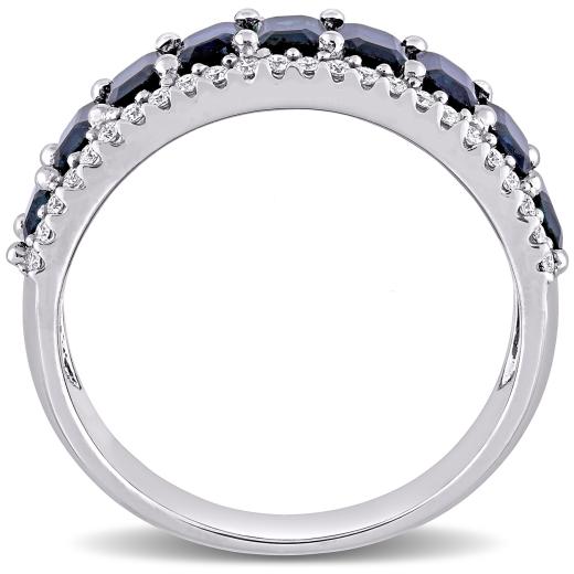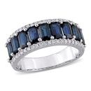 Mark a milestone in your journey together with this glamorous Sapphire and Diamond Semi-Eternity Anniversary Ring. Crafted in lustrous 14-karat white gold, this gorgeous ring features nine octagon-cut, prong-set blue sapphire gemstones (5x3mm) and 48 round-cut, buttercup-set diamonds (G-H, I1). Enhanced with a polished finish, this delicate ring is a breathtaking choice. You simply cannot go wrong with this classy ring.