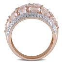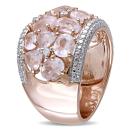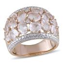 Enrich your look with this ethereally beautiful Rose Quartz Vintage ring. Crafted in rose plated sterling silver, this glitzy ring features many oval-cut, prong set, rose quartz gemstones of different sizes with five round-cut, prong set, diamonds (G-H,I3) along the edges of the ring. Polished to brilliance, this ring is sure to become your new favorite statement piece for all occasions.