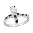 Designed with captivating detail, this 0.11CTW black & white diamond open snake ring in sterling silver features an intricate scaled pattern that mimics the natural movement of a serpent. The open design wraps gracefully around the finger, with shimmering white diamonds along its body and striking black diamond eyes. A bold and enchanting piece, perfect for those who love unique, statement jewelry.