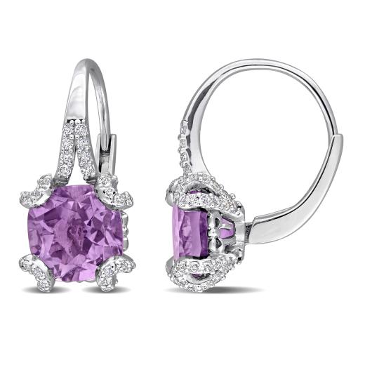 Julianna B Sterling Silver Amethyst and White Topaz 18" Drop Pendant with Chain
