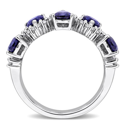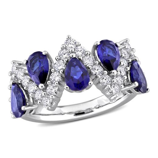 Elegant Silver Fashion Ring Featuring 7/8 CT Lab-Grown Diamonds and 3 1/2 CT Created Blue Sapphires — A Brilliant Choice for Everyday Glamour.