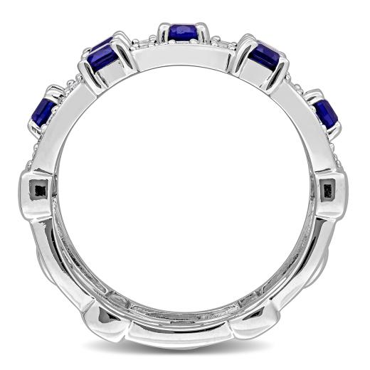 Classic Silver Eternity Ring Set with 1/3 CT Lab-Grown Diamonds and 1 CT Created Blue Sapphires — Perfect for Everyday Wear.