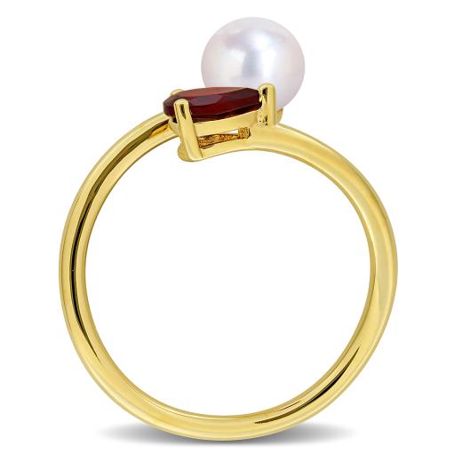 Add timeless charm to your jewelry collection with this garnet and 6–6.5MM white freshwater cultured pearl fashion ring. Featuring a vibrant red garnet paired with a luminous white freshwater pearl, this elegant design is crafted in yellow plated sterling silver for a warm, radiant finish—perfect for day-to-night sophistication.