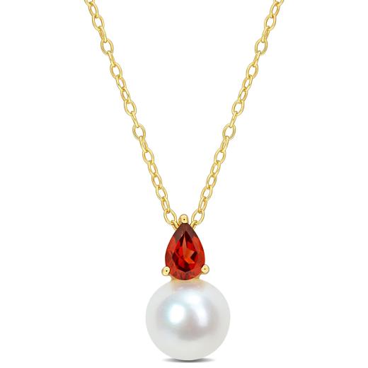 Julianna B Yellow Plated Sterling Silver Garnet & 8.5-9MM Pearl Pendant