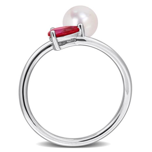 Add a bold pop of color with this created ruby and 6–6.5mm white freshwater cultured pearl fashion ring. Featuring a created ruby paired with a luminous white freshwater pearl, this sterling silver design blends classic charm with striking elegance—ideal for elevating any look.