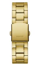 Take your style to new levels with this classic gold-tone analog watch, complete with a black dial. U1194G3