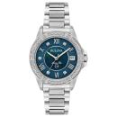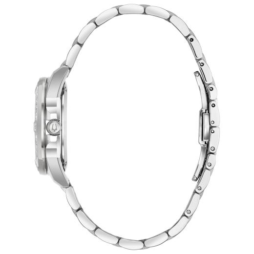 From the Marine Star Collection. New Marine Star in stainless steel case with 29 diamonds individually hand set on silver-tone accented bezel and dial, midnight blue mother-of-pearl inner dial, sapphire glass, screw-back case, stainless steel bracelet with double-press deployment closure, and water resistance to 1 meters. 96R215