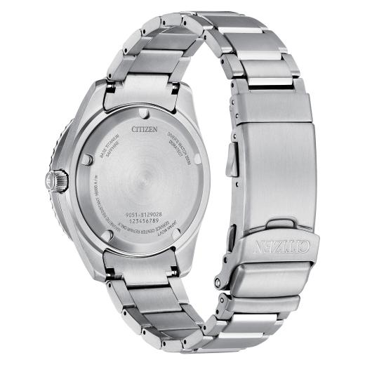 This men's Automatic Promaster Dive Watch from Citizen combines cutting-edge technology with lightweight titanium construction. Built for durability, it’s powered by automatic movement, meaning it winds itself as you wear it, requiring no battery. The titanium case offers a robust yet lightweight feel, making it perfect for underwater adventures with its water resistance and rotating bezel.
